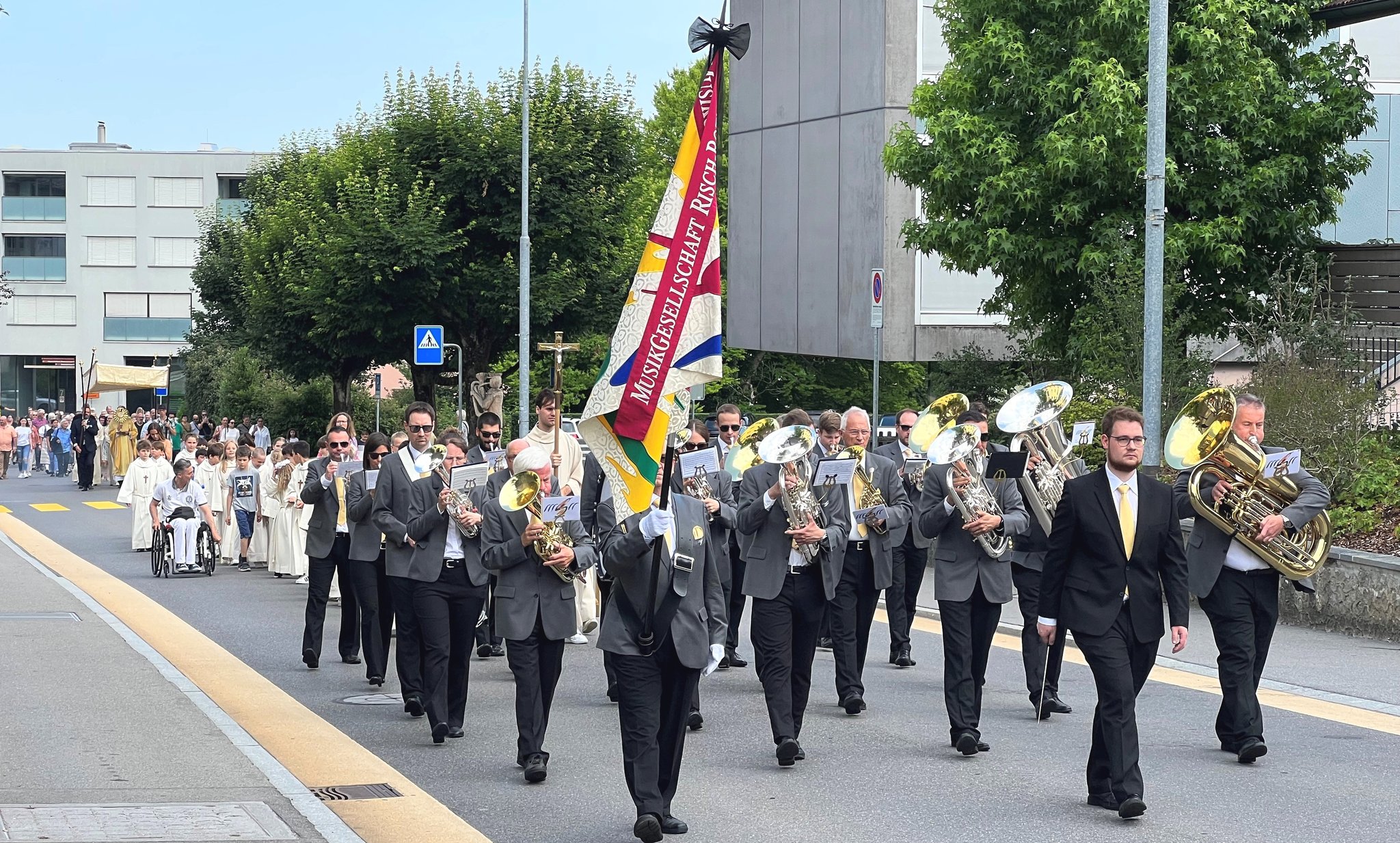 Diesen Familiengottesdienst mit unseren Erstkommunionkindern feiern wir auf dem Dorfmattplatz. Musikalisch begleitet uns der MVR während dem Gottesdienst und der anschliessenden Prozession zur katholischen Kirche. Nach dem Segen laden wir Sie alle herzlich ein zum Apéro mit Musik des MVR.