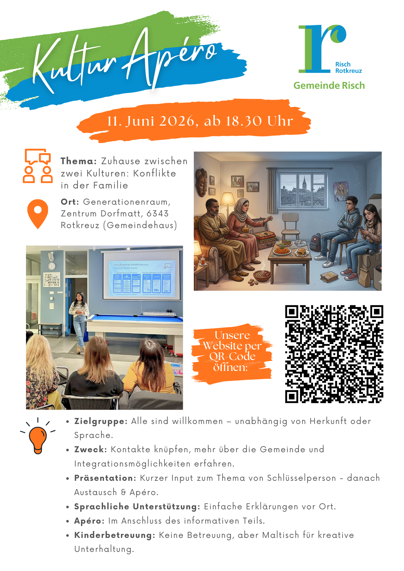 Die Gemeinde Risch lebt Vielfalt – und setzt sich mit Herzblut für eine gelungene Integration ein. Ein besonderes Highlight ist der Kulturapéro, organisiert vom Netzwerk Schlüsselpersonen. Dieser Anlass bringt Menschen aus unterschiedlichsten Kulturen zusammen und schafft Raum für Begegnungen, Austausch und gegenseitiges Verständnis.