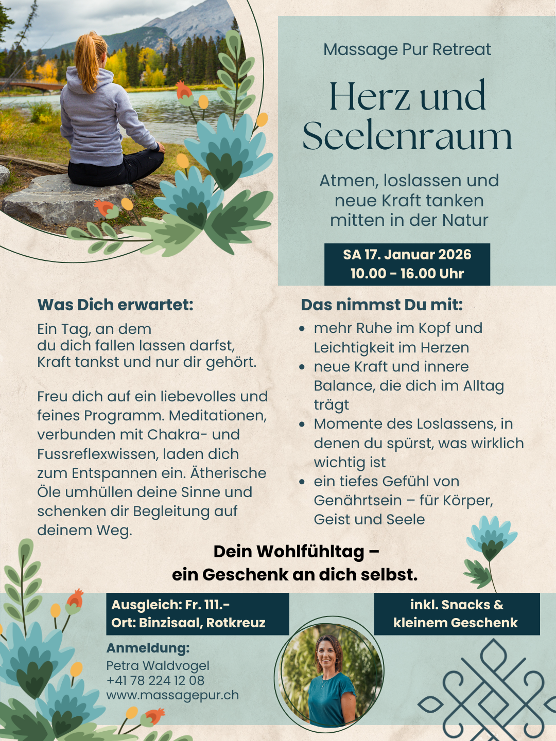 Freue Dich auf ein feines Programm welches dir Ruhe für deinen Körper und Geist schenkt.