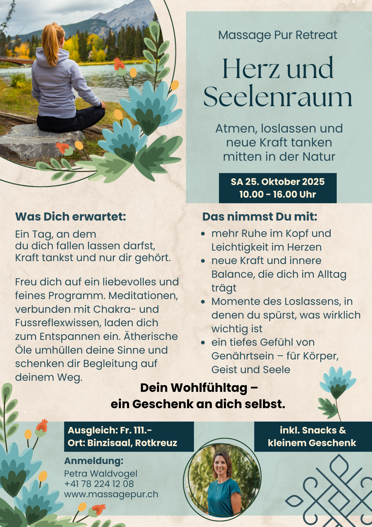 Dein Kopf darf Pause machen, dein Atem fliessen. Dein Körper darf loslassen, entspannen und es entsteht Raum für Ruhe.