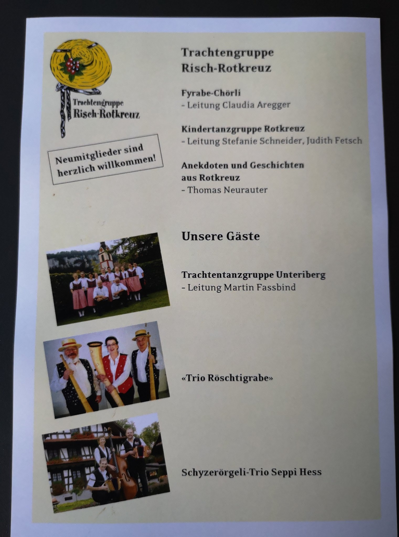 Die Trachtengruppe Risch-Rotkreuz und die Gastgruppen freuen sich, mit euch einen gemütlichen Nachmittag zu verbringen.